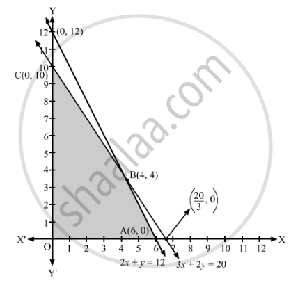 A cottage industry manufactures pedestal lamps and wooden shades, each requiring the use of grinding/cutting machine and sprayer. It takes 2 hours on the grinding/cutting machine and 3 hours on the sprayer to manufacture a pedestal lamp while it takes 1 hour on the grinding/cutting machine and 2 hours on the sprayer to manufacture a shade. On any day, the sprayer is available for at most 20 hours and the grinding/cutting machine for at most 12 hours. The profit from the sale of a lamp is ₹5.00 and a shade is ₹3.00. Assuming that the manufacturer sell all the lamps and shades that he produces, how should he schedule his daily production in order to maximise his profit?