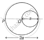 A cylindrical cavity of diameter a exists inside a cylinder of diameter 2a as shown in the figure. Both the cylinder and the cavity are infinitely long. A uniform current density J flows along the length. If the magnitude of the magnetic field at the point P is given `"N"/12`µ0aJ, then the value of N is ______.