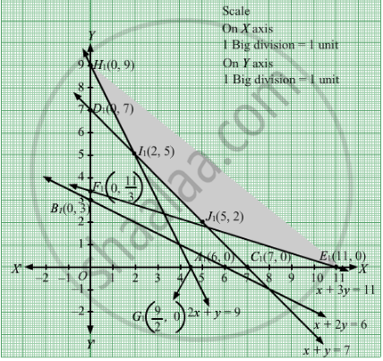 The corner points are H1(0, 9), I1(2 ,5), J1(5, 2), E1(11, 0).
