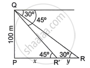 tan 45 = `(PQ)/(PR')`