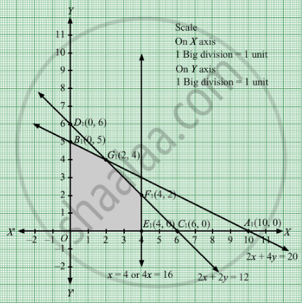 The feasible region determined by the system of constraints 2x + 4y ≤ 20, 2x + 2y ≤ 12, 4x ≤ 16, x ≥ 0 and y ≥ 0 are as follows