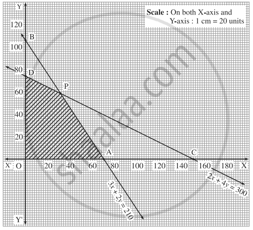 The vertices of the feasible region are O (0, 0), A (70, 0), P and D (0, 75).