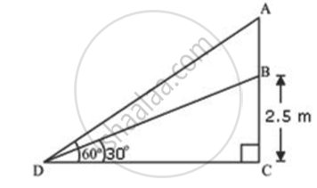 A flagstaff stands on a vertical pole. The angles of elevation of the top and the bottom of the flagstaff from a point on the ground are found to be 60° and 30° respectively. If the height of the pole is 2.5m. Find the height of the flagstaff.