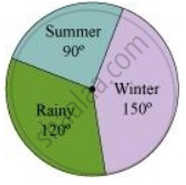 Season Number of votes In fraction Central angle Summer 90 `90/360` `90/360 xx 360^@ = 90^@` Rainy 120 `120/360` `120/360 xx 360^@ = 120^@` Winter 150 `150/360` `150/360 xx 360^@ = 150^@` - A pie chart can be drawn for the above data as follows.