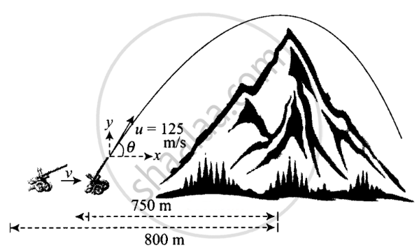 According to the problem, the speed of packets = 125 m/s, the height of the hill = 500 m, the distance between the cannon and the foot of the hill, d = 800 m