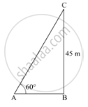 A kite is flying at a height of 45 m above the ground. The string attached to the kite is temporarily tied to a point on the ground. The inclination of the string with the ground is
