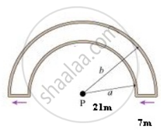 There are two concentric semi circles. The diameter of the inner circle = 42 or radius, a = 21m. The radius of the outer circle, b = 21 + 7 = 28m.