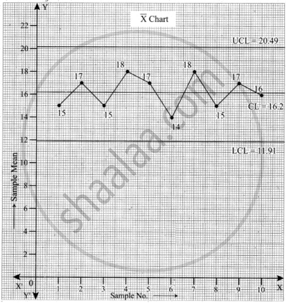 `\overset{==}{"X"} = (sum"X")/"No. of samples" = 162/10` = 16.2