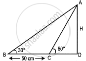 `(sqrt(3)H)/1 - H/sqrt(3) = 50` ...(Using (i) and (ii))
