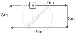 A man starts from a point A and walks 5 metres in the east then he turns right and walks 3 metres, again he turns right and walks 9 metres and ftnaµy he takes a right turn walks 3 metres. Now how far is the man from point A and in which direction?