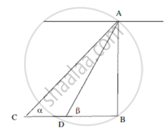 In the figure , AB is the tower . A is the position of the man. C and D are the two positions of the truck.