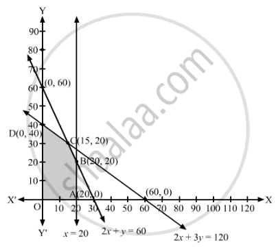 The coordinates of the corner points of the feasible region are O(0, 0), A(20, 0), B(20, 20), C(15, 30) and D(0, 40).