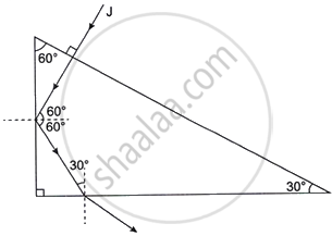 - Out of the three rays (I, J, H) shown in the diagram, which ray will suffer Total Internal Reflection while inside the prism? (Critical angle of the prism is 42°.)