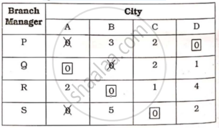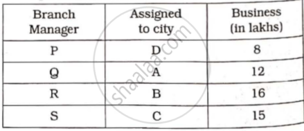 A pharmaceutical company has four branches, one ea.ch at city A, B, C, D. A branch manager is to be appointed one at each city, out of four candidates P, Q, R and S. The monthly business deyending upon the city and the effectiveness of the branch manager in that city is given below :