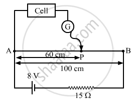 A potentiometer wire of length 1 m has a resistance of 5 Ω. It is connected to a 8 V battery in series with a resistance of 15 Ω. Determine the emf of the primary cell which gives a balance point at 60 cm.