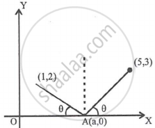 `(3 - 0)/(5 - a)` = tan θ (say) ...(1)
