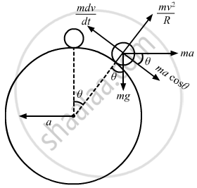 \[ \Rightarrow \nu^2 = 2\text{ R } \left( a \sin \theta + g - g \cos \theta \right)\]