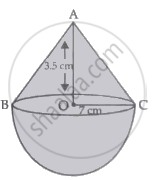 A solid is in the shape of a hemisphere surmounted by a cone. If the radius of hemisphere and base radius of cone is 7 cm and height of cone is 3.5 cm, find the volume of the solid. `("Take" π = 22/7)`