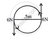 A steering wheel of diameter 0.5 m is rotated anticlockwise by applying two forces each of magnitude 6 N. Draw a diagram to show the application of forces and calculate the moment of forces applied.