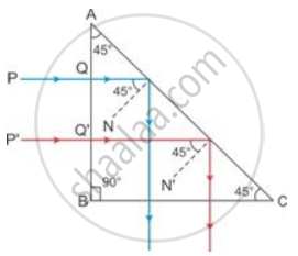 - Complete the path of the ray PQ till it emerges from the prism. Mark in the diagram the angle wherever necessary.