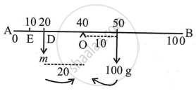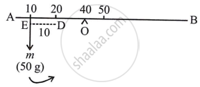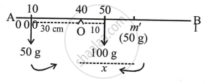 Let a mass of 50 g be suspended at a distance of x cm from O to the right side to balance the mass of 50 g at the 10 cm mark.