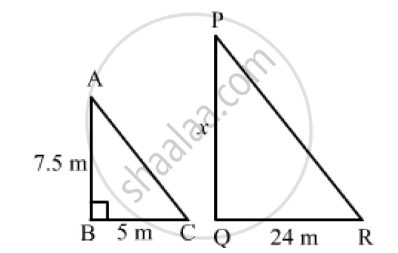 A vertical pole of length 7.5 cm casts a shadow 5 m long on the ground and at the same time a tower casts a shadow 24 m long. Find the height of the tower.