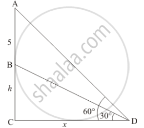 Let BC be the tower of height, hm and AB be the Flagstaff with distance 5m. Then the angle of elevation from the top and bottom of Flagstaff are 60° and 30° respectively.