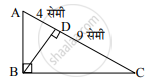 एका काटकोन त्रिकोणात कर्णावरील शिरोलंबामुळे कर्णाचे 4 सेमी व 9 सेमी लांबीचे दोन भाग होतात, तर त्या शिरोलंबाची लांबी किती?