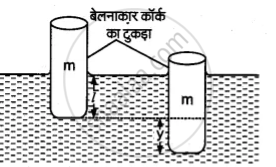 तैरने के सिद्धांत से, कॉर्क के डूबे भाग द्वारा हटाए गए द्रव का भार कॉर्क के भार के बराबर होगा,