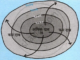 आगे वायुदाब अलग-अलग मिलीबार में दिया है। उससे चक्रवात और प्रतिचक्रवात की आकृति बनाओ:
