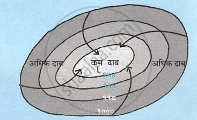 आगे वायुदाब अलग-अलग मिलीबार में दिया है। उससे चक्रवात और प्रतिचक्रवात की आकृति बनाओ:
