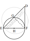 आकृती मध्ये, रेख EF हा व्यास आणि रेख DF हा स्पर्शिकाखंड आहे. वर्तुळाची त्रिज्या r आहे. तर सिद्ध करा - DE × GE = 4r2