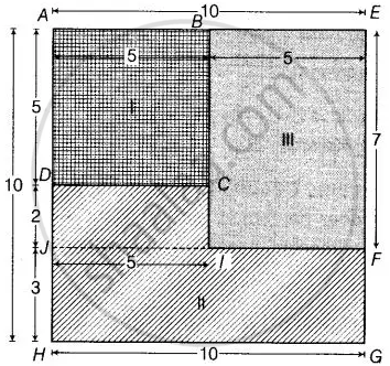 II भाग का क्षेत्रफल = DCIJ का क्षेत्रफल + FGHI का क्षेत्रफल