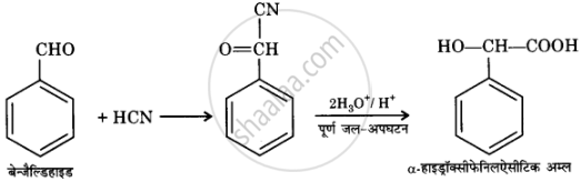 बेन्ज़ैल्डिहाइड से α-हाइड्रॉक्सीफ़ेनिलऐसीटिक अम्ल