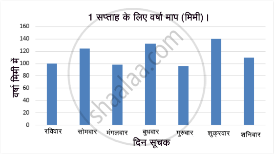 आपके विद्यालय के वर्षा मापक का उपयोग करके वर्षाऋतु के एक सप्ताह में अपने परिसर में होने बाली वर्षा का मापन कीजिए। प्राप्त आकड़ो के आधार पर वर्षा का वितरण दर्शाने वाला स्तंभालेख संगणक के आधार पर तैयार कीजिए।