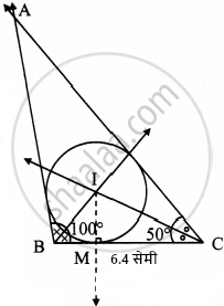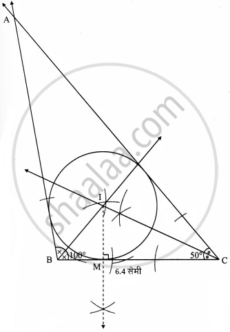 ΔABC असा काढा की, ∠B =100°, BC = 6.4 सेमी, ∠C = 50°. या त्रिकोणाचे अंतर्वर्तुळ काढा.