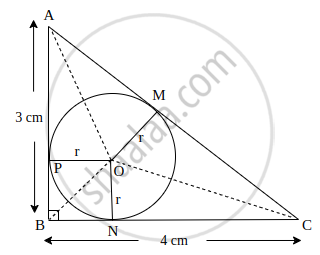 ΔABC circumscribes a circle of radius r such that ∠B = 90°. If AB = 3 cm and BC = 4 cm, then find the value of r.