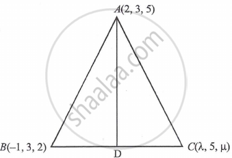 It is given that, A = (2, 3, 5), B = (–1, 3, 2) and C = (λ, 5, µ) are three vertices of ΔABC.