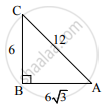 ΔABC मध्ये, AB = `6sqrt3` सेमी, AC = 12 सेमी आणि BC = 6 सेमी तर ∠A चे माप किती?