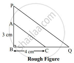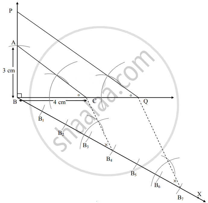 ∆ABC ~ ∆PBQ. In ∆ABC, AB = 3 cm, ∠B = 90°, BC = 4 cm. Ratio of the corresponding sides of two triangles is 7 : 4. Then construct ∆ABC and ∆PBQ