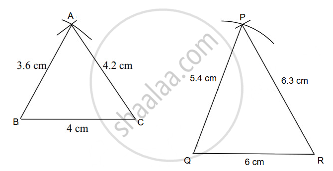 ΔABC ~ ΔPQR. In ΔABC, AB = 3.6 cm, BC = 4 cm, AC = 4.2 cm. The corresponding sides of ΔABC and ΔPQR are in the ratio 2 : 3. Construct ΔABC and ΔPQR.