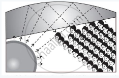 अच्छे सम्मेलन कक्षों अथवा कंसर्ट हॉलों की छत तथा मंच के पीछे की दीवारें वक्राकार क्यों बनाई जाती हैं?