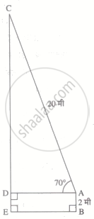 AB = 2 मीटर, AC = 20 मीटर और ∠CAD = 70°