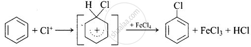 क्रियाविधि: \[\ce{Cl - Cl + FeCl3 -> FeCl4 + Cl+}\]