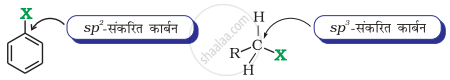 (ii) हैलोऐल्केन में हैलोजन से जुड़ा कार्बन परमाणु sp3 संकरित होता हैं जबकि हैलोऐरीन में हैलोजन परमाणु से जुड़ा कार्बन परमाणु sp2 संकरित होता है।