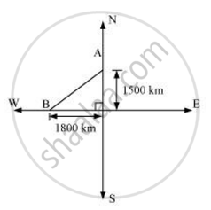 An aeroplane leaves an airport and flies due north at a speed of 1,000 km per hour. At the same time, another aeroplane leaves the same airport and flies due west at a speed of 1,200 km per hour. How far apart will be the two planes after `1 1/2` hours?