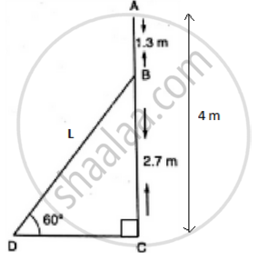 Let AC be the electric pole of height 4 m. Let B be a point 1.3 m below the top A of the pole AC.