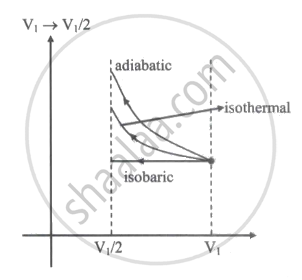 An ideal gas is compressed to half its initial volume by means of several processes. Which of the process results in the maximum work done on the gas?