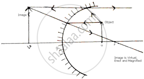The image formed by a convex mirror is of size one third the size of object. How are u and v related?