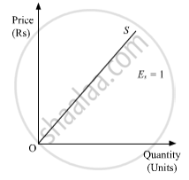 a. Unitary Elasticity of Supply (Es=1 )- If the straight line supply curve originates from the origin, then irrespective of the angle of inclination of the supply curve, the elasticity of supply will always be equal to one i.e. (Es=1 ). Such a supply curve is called unitary elastic supply curve.